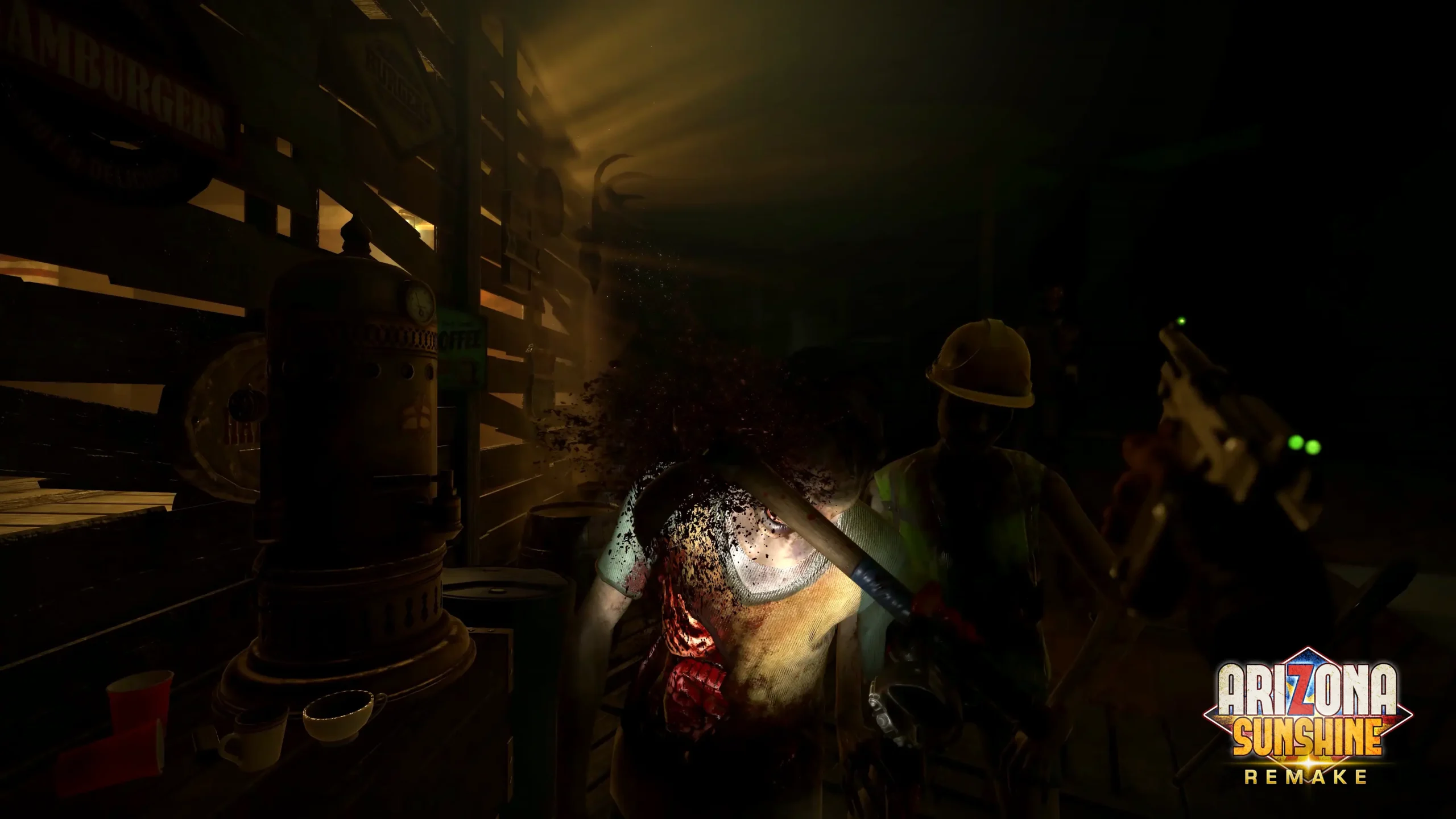 As mentioned this is remake of the classic Arizona Sunshine and it’s DLC, so the game has been made from the ground up to bring the visuals on par with Arizona Sunshine 2. Which brings with it the updates gore system from the second game, meaning more damage and mutilation on Fred’s. With the update it means players are also getting higher resolution textures, more realistic environmental details and lighting, which really brings the sun-kissed plains of Arizona to life and make those darker underground parts a bit more freaky with your limited light.