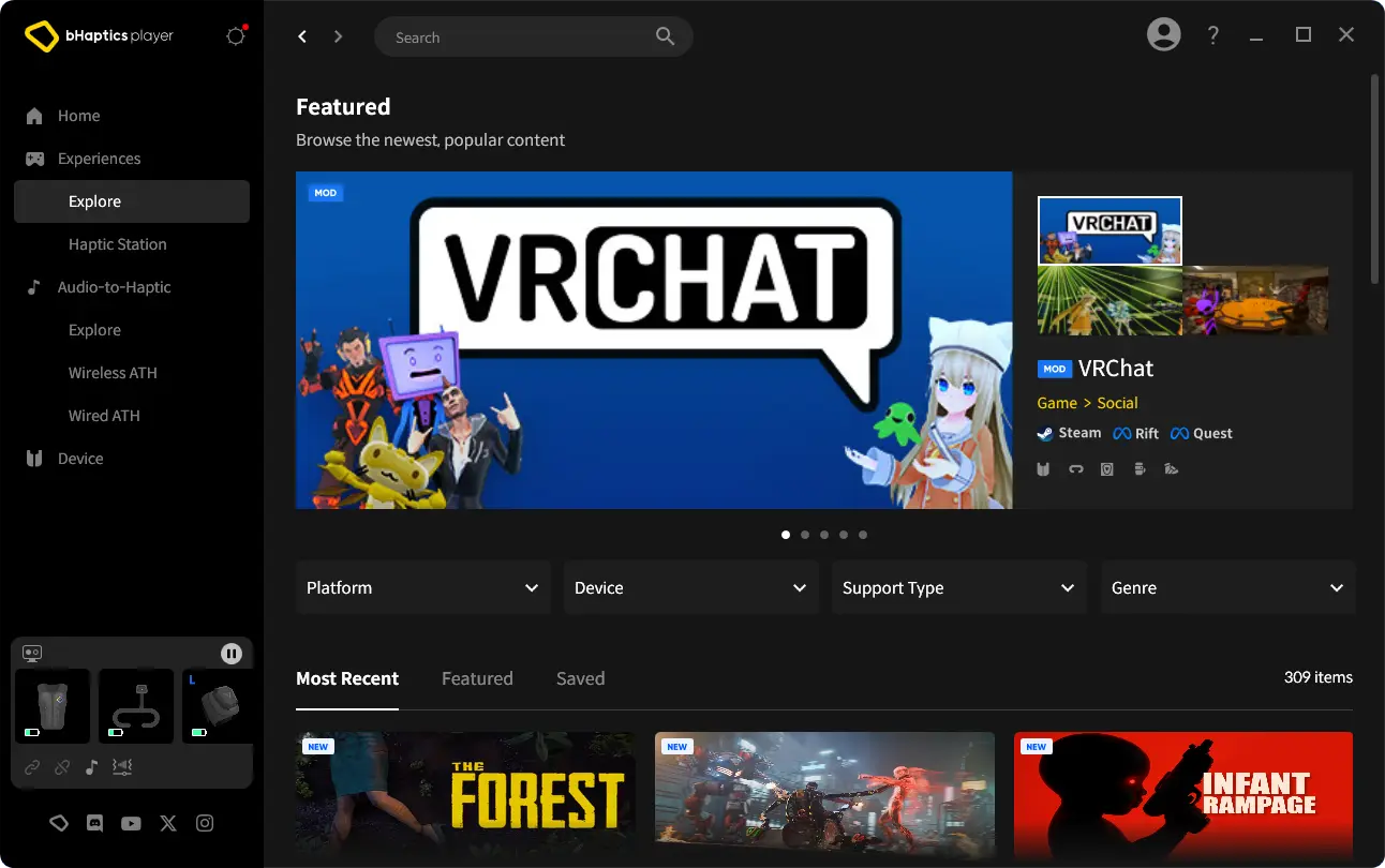 Alongside the games that are either natively supported or modified (for PC VR only), the vest includes an Audio to Haptics feature. This allows audio to be converted into haptic feedback throughout the entire vest. To enhance the effectiveness of this feature, you might need to tweak certain settings in the games or within the bHaptics desktop or mobile app.
