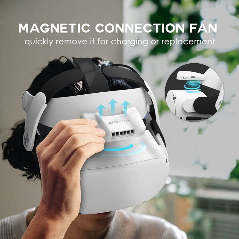 It’s really simple to attach to the Quest 2, and you will have it in place in minutes. Firstly you need to remove you current facial interface, and replace it with the one provided by BOBOVR. Once this in place, the Air Circulation fan will magnetically snap onto the facial interface – making it easy to remove and connect up.