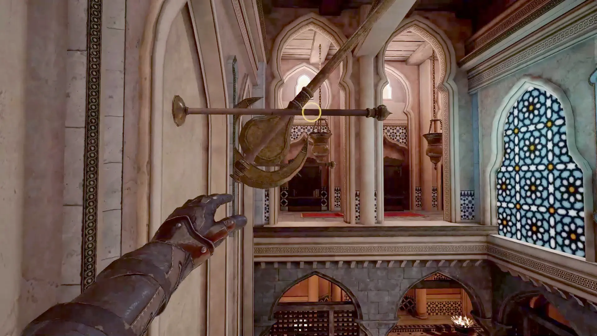 As well as your standard movement with the controllers you will find yourself climbing around the stunning Persian environments and performing some very smooth parkour. The parkour is very well implemented, as you will highlight the next part you want to jump to by looking in its direction, push yourself towards it and it completes the jump with a slow down to give you time to grab it. Need to get to a lower level and there is a banner close by, run towards it, jump and grab it, and it will rip as you move down it. I have been totally impressed with this system, as you fluidly traverse the levels and it feels so good – which is what I wanting from Assassin’s Creed Nexus, but never got.