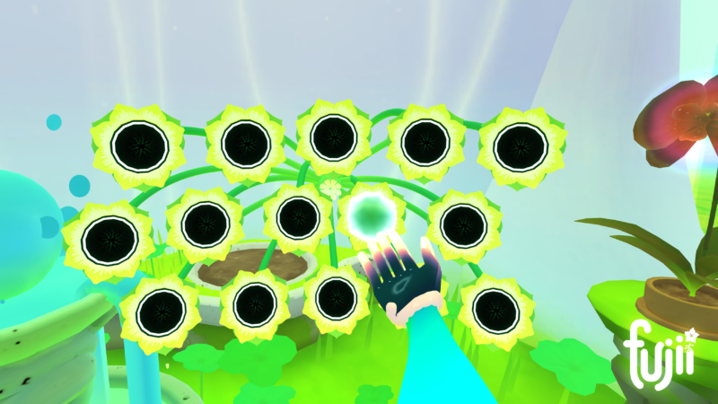 When it comes to the Valve Index the team have implemented full support from interaction to visual for the Index Controllers. This means the grab and release interaction will just be done using a natural grab action, and you can move each finger separately on your hand. The analogues are used to teleport shown by an icon on the floor, your trigger will fire the water from your fingers and the buttons will open your inventory to store your orbs and seeds. A simple control system, that helps keeping that chilled feeling.
