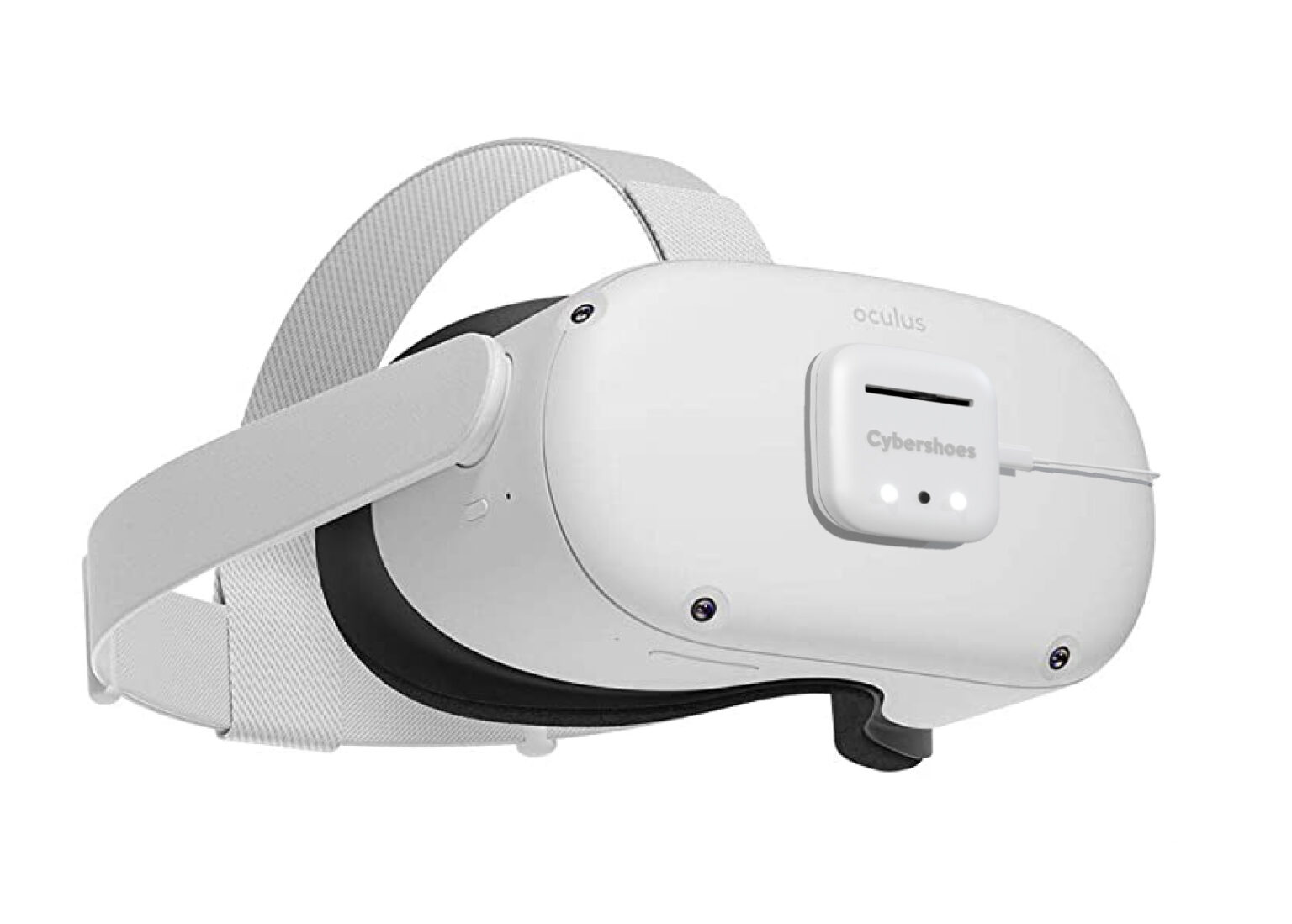 With already using the PCVR version of the Cybershoes, our set-up was straight forward and simple, but we were not expecting it to be as straight forward as it was – given nothing is controlled by software on the PC. All we needed to do was firstly attach the module to the front of the Quest 2, this is done using a sticky Velcro pad provided with the module.