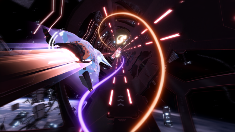 The way they have done this is rather being in the vehicles cockpit, they have made the ship in a third-person view and it’s like a model in your hand. This makes for an interesting racing mechanic and experience. Then rather than the races taking place on a track, they are done in narrow tunnels for the most part.