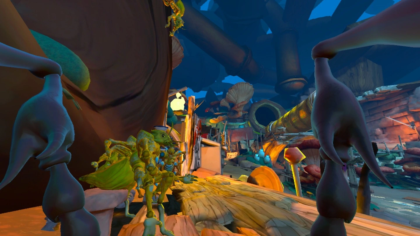 This decision has lead to low quality textures in this surreal world insect you are exploring, with some of them coming into more detail when you are actually walking on them under you little bug feet. Add to these lower quality textures really bad pop-in that is happening about two-meters in front of you at times, and it becomes overly distracting and breaks the immersion you need so much in Virtual Reality. Despite the game not fairing well in the close distance, when you start to hit more dense areas like the town section I also faced some frame dips, which also cause issues when doing some of the platforming and with comfort.