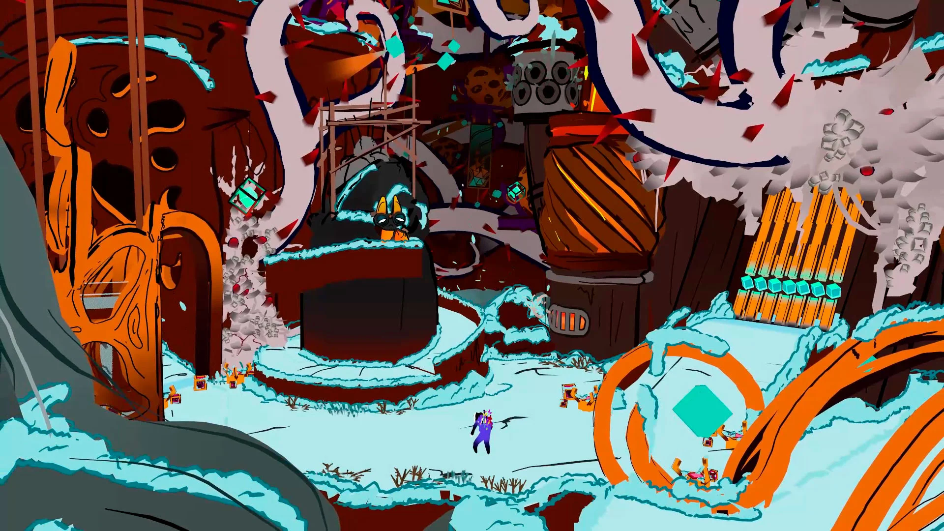 It’s quite challenging to articulate just how stunning these visuals appear and how they resonate within the headset. The aesthetic is genuinely beautiful and distinctive, and even though their last game had a hand-painted quality, this feels like an entirely fresh experience. Each biome possesses its own unique atmosphere and appearance, effectively conveying various emotions, along with new enemy designs to encounter. The way each biome aligns with the human emotions you are fighting enhances the immersion, despite its unique hand-painted style.