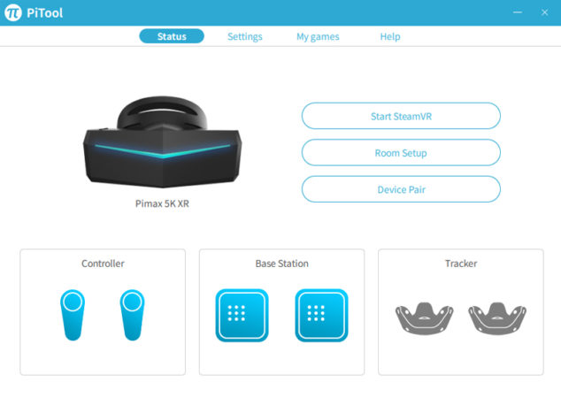 For us the set-up of the product was pretty straight forward to have everything ready to use. Pimax requires you to download their own program called PiTool from their website, which will show the status of your HMD, let you mess with the settings for your HMD and pair controllers. You can also launch the games in your libraries from here, but this will require some additional set-up.