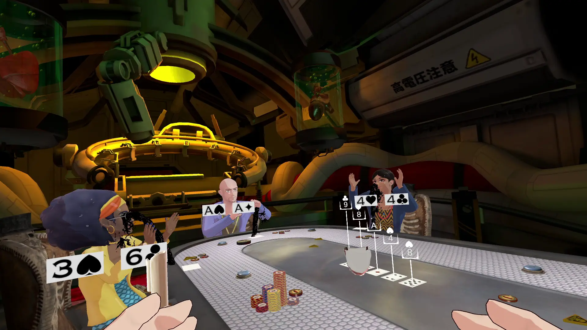 For the audio you are going to get some background music that seems to match in well with your current opponent as you sit around the table, but in most cases these are very short loops and them repeating will eventually start to annoy you. Each of your opponents are voice acted well and each voice suits the characters demeanor, but as with the music they will repeat set lines as your are sat playing your round – again becoming quite annoying after a set amount of time. Which is a shame as they seem very interactive, it’s just ruined by the few lines they are given. One touch I did like in the audio is, when you bet your ears and lose the hosts voice will change, like losing your ears has had an effect on your character. Although, an issue rears its head here, as its only the hosts voice that changes the rest of it stays the same, breaking that little bit immersion offered by this.