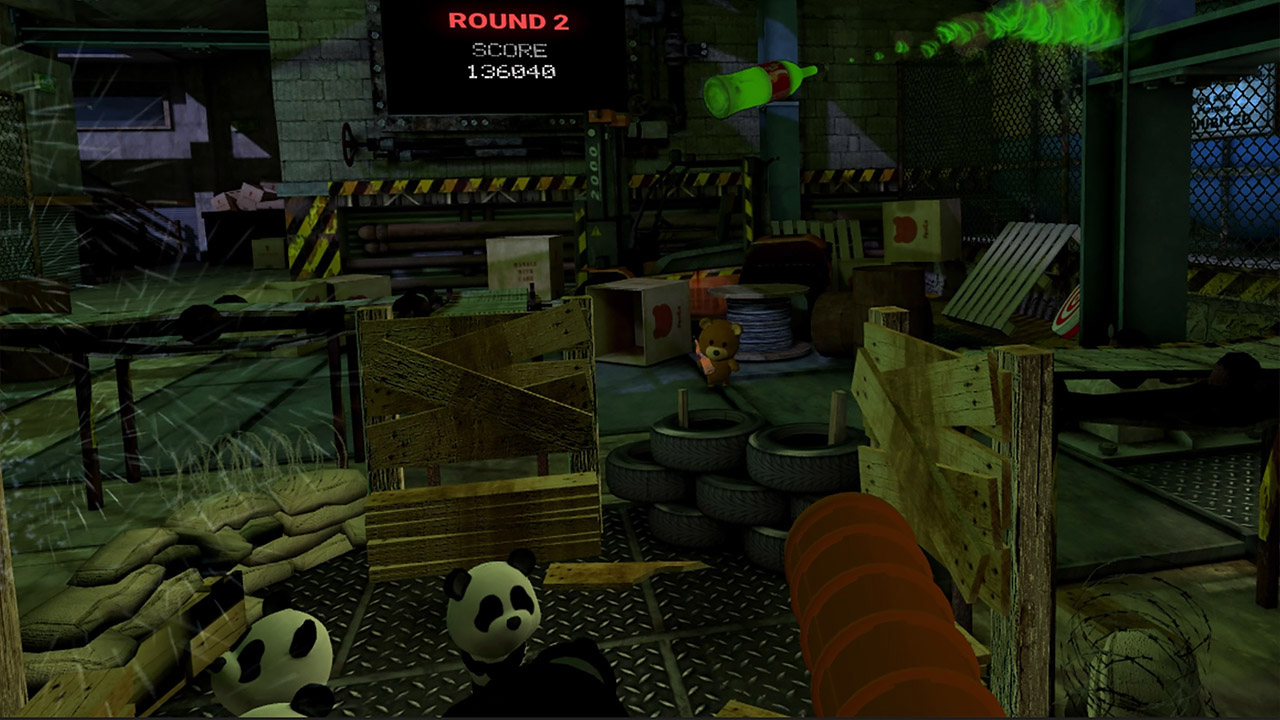 Gameplay wise, you get what you would expect from a static wave based shooter. The game does try to mix it up a little by giving you a few different types of guns that are needed for set tasks on set the modes offered. You get a standard you pistol that can take out any enemy, a toy shotgun which is used to remove the wooden shields of the larger enemies and to take out enemies, a water pistol to put out fires, and lastly an ice gun. As well as the standard enemies you will get targets that show up, hit these are gain extra points for the leader board. Also some teddies will fire plastic bottles at you, these will need shooting out the sky as well. The reason you have to shoot them is were some VR shooters offer a dodge option, there is no dodging in the game, so you have to be prepared and fast on the trigger.