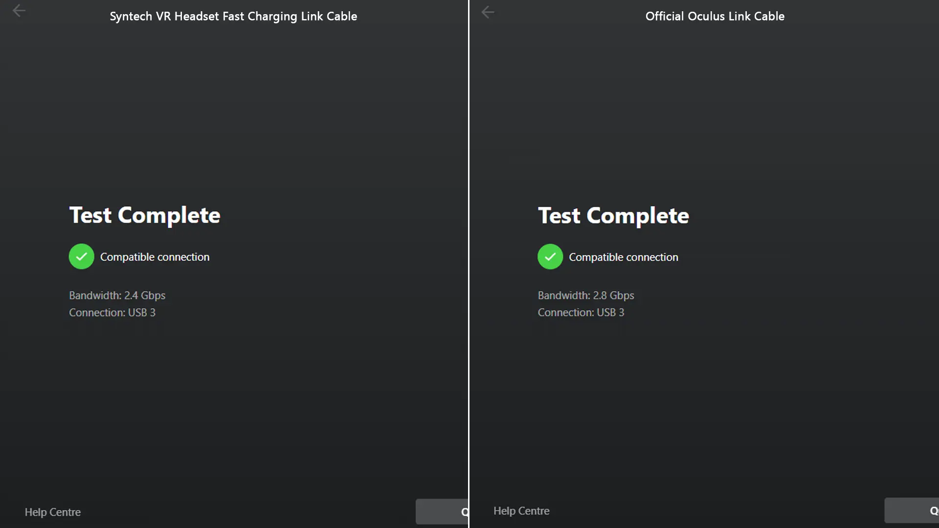 I conducted several USB tests using both my official link cable and Syntech’s fast charging link cable through the Meta PC Link software on my computer. The findings showed that the official cable achieved a bandwidth of 2.8 Gbps, while Syntech’s cable reached 2.4 Gbps. Although there is a .4 Gbps difference, I couldn’t perceive any noticeable difference in performance or image quality between the two cables. Everything operated smoothly, and the image appeared clear and crisp within the headset.