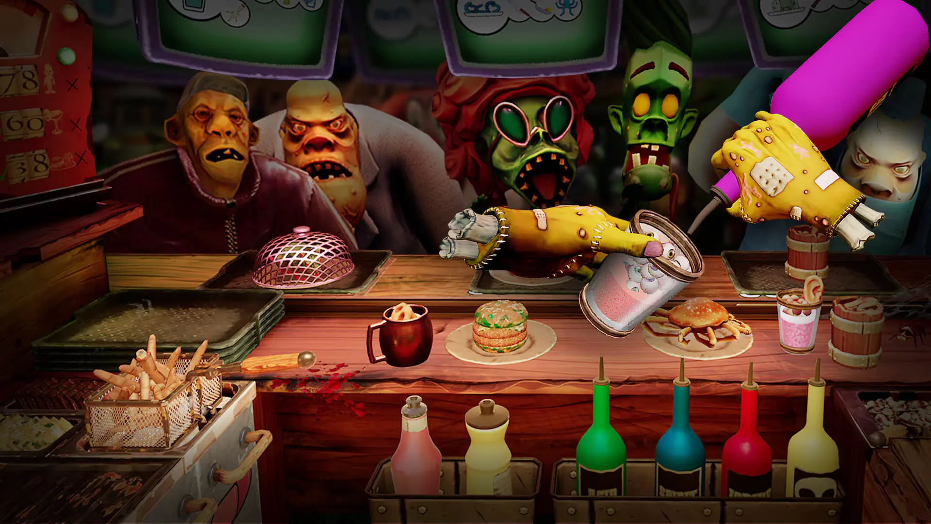 With the theme the ingredients you will be using get very ghoulish, which will see making drinks with eyes, mixed with things like blood or acid and topped with an ear, nose or worm. With the food replacing fries with fingers and having you making burgers from brains, hearts or livers just to name a few things on the menu.