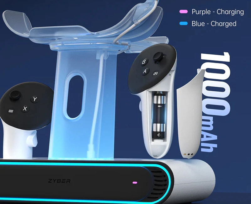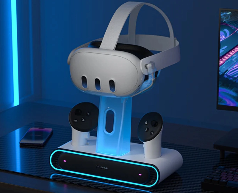 The ZyberVR Quest 3 Sky Tower Charging Dock offers a great way to display your HMD and controllers, all while charging both the headset and controllers (using their rechargeable batteries and controller back covers) in a very acceptable time. With the Sky Tower clearly indicating when everything is charging and when charging is complete. All while looking very stylish never mind where you decide to display it, and with the solid build, weighting and sturdiness of the product, there is no worries that the HMD will fall off the stand.